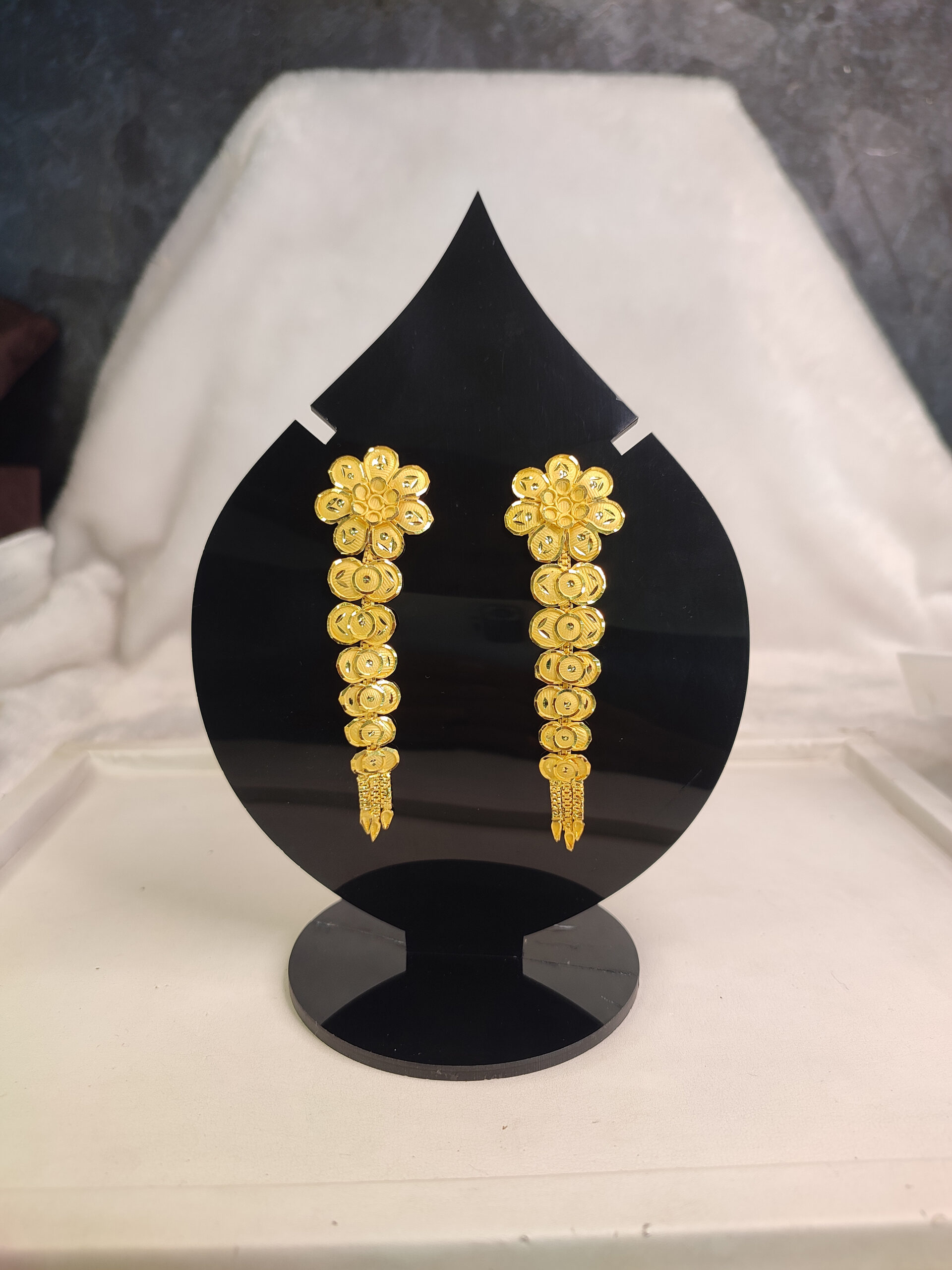 A charming and feminine earwear of golden metal, with a floral design.