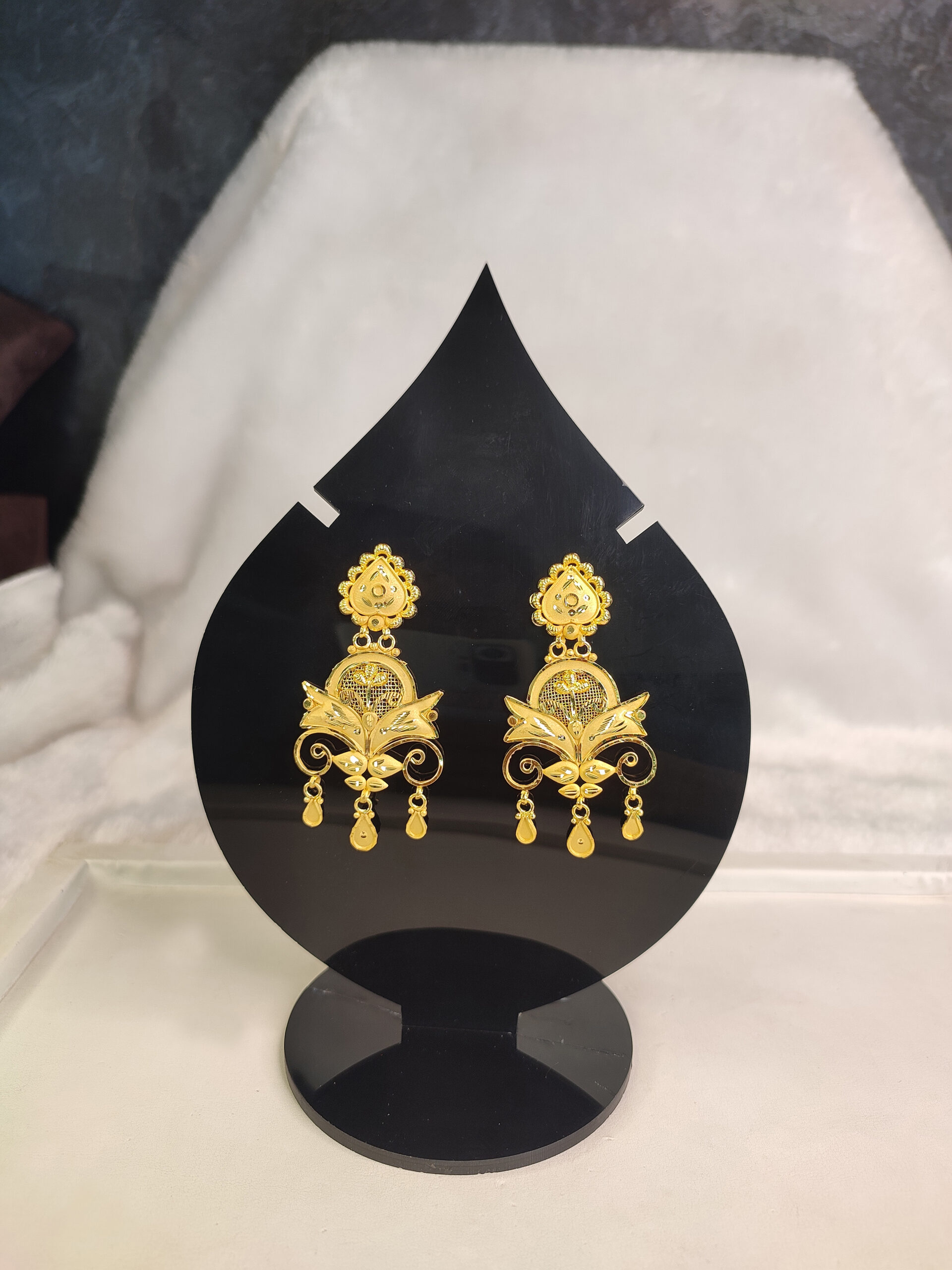 A charming and feminine earwear of golden metal, with a floral design.