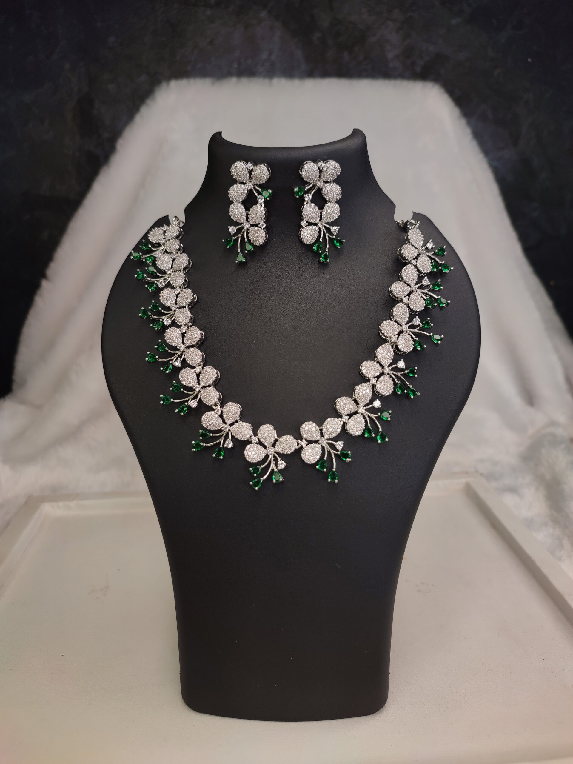 A charming and feminine American Diamond Silver necklace set, with a pair of earrings.
