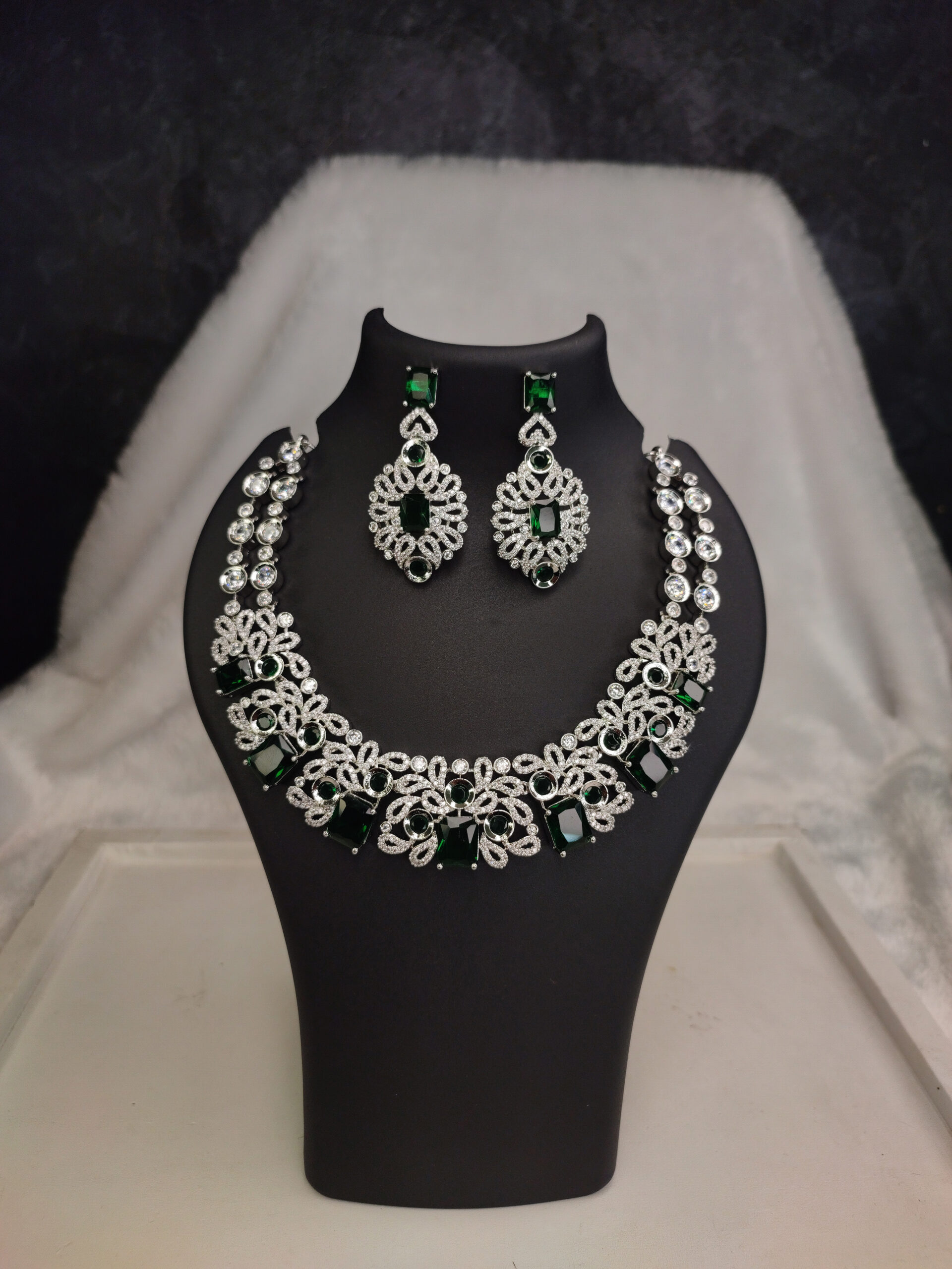 A charming and feminine American Diamond Silver necklace set, with a pair of earrings.